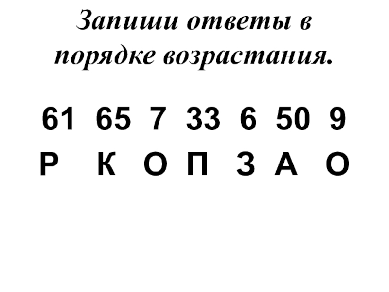 Запиши ответы в порядке возрастания.61 65 7 33 6 50 9Р  К  О П