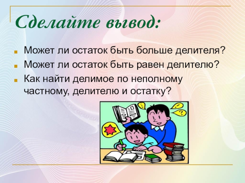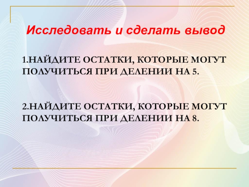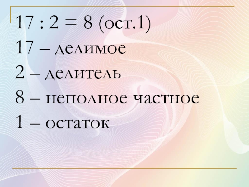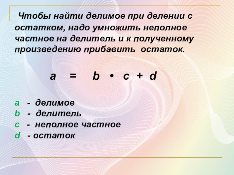 Вариант 2 1.Найдите остаток от деления числа 609 на 19. а)20; б)8; в)1; г) другой ответ. 2. В каждой клетке можно разместить не более 7 кроликов. Сколько клеток потребуется для 393 кроликов? а) 56; б) 57; в)58; г) другой ответ. 3.Найдите делимое , если делитель равен 9, неполное частное –17, а остаток –4 а)153; б)161;в)157;в) другой ответ. 4. Пирожок стоит 9 рублей. Сколько пирожков можно купить на 40 рублей? а) 5; б) 4; в) 7; в) другой ответ.