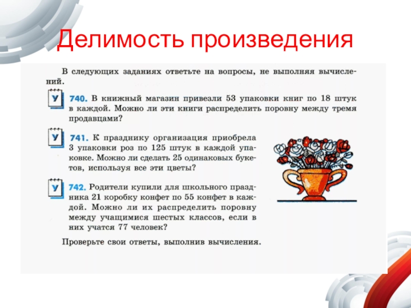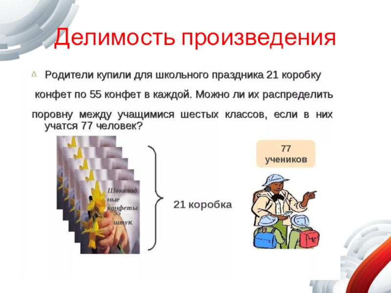 Презентация, доклад по математике Делимость произведения (6 класс)