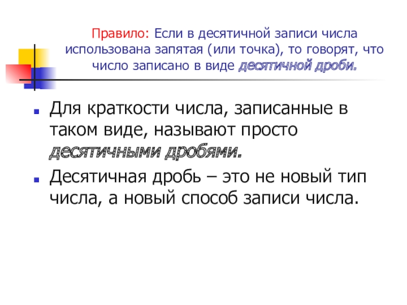Десятичная дробь – это не новый тип числа, а новый способ записи числа.