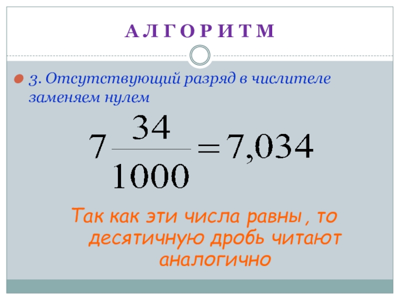 Так как эти числа равны, то десятичную дробь читают аналогично