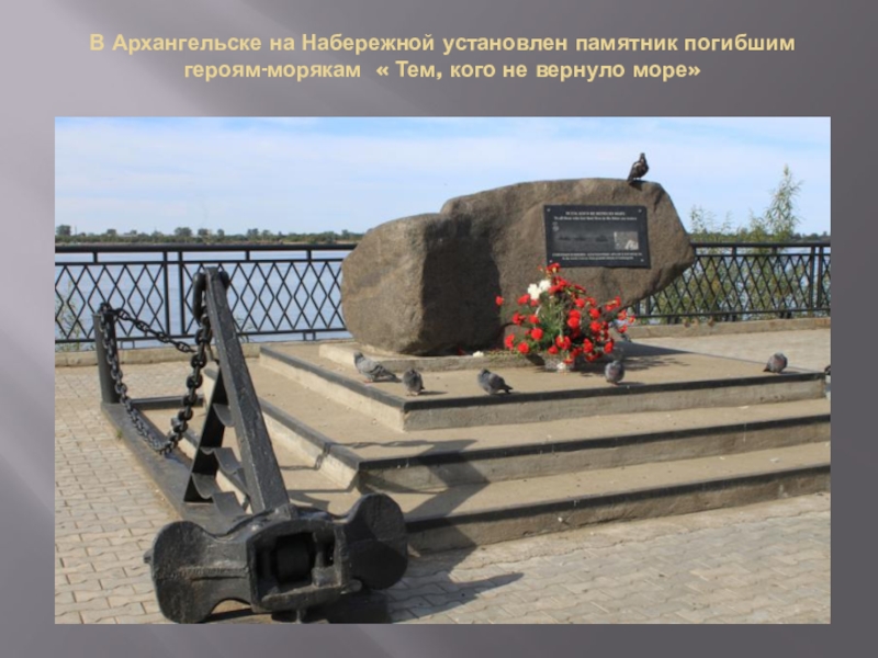 Слайд 20В Архангельске на Набережной установлен памятник погибшим героям-морякам « Тем, кого