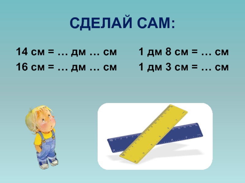 1 дм = … см 16см=…дм…см