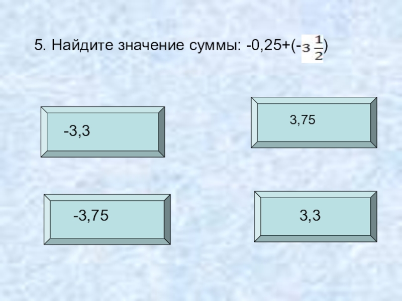 5. Найдите значение суммы: -0,25+(-   )3,75-3,75-3,33,3