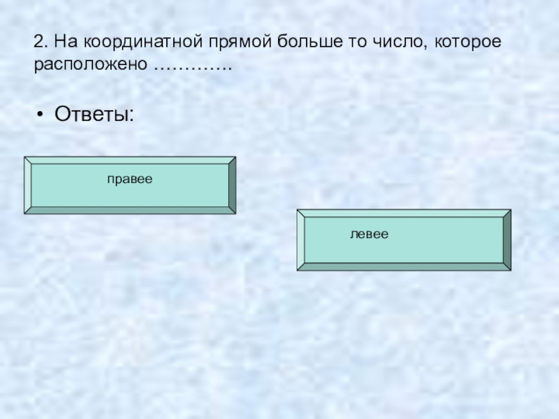 2. На координатной прямой больше то число, которое расположено ………….Ответы:левее