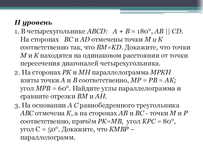 Слайд 7II уровень. Задачи требуют от учащихся применения усвоенных знаний и способов