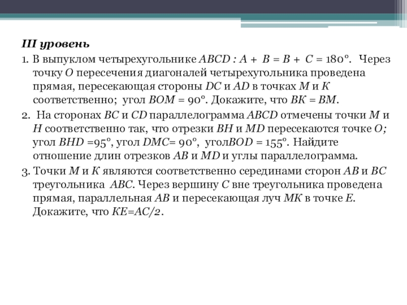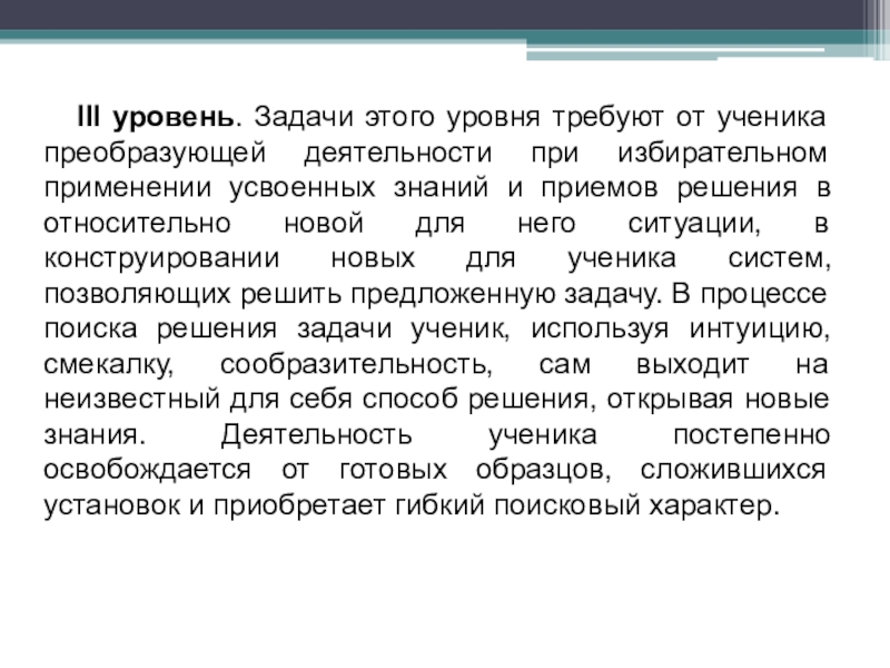 Слайд 8III уровень. Задачи этого уровня требуют от ученика преобразующей деятельности при