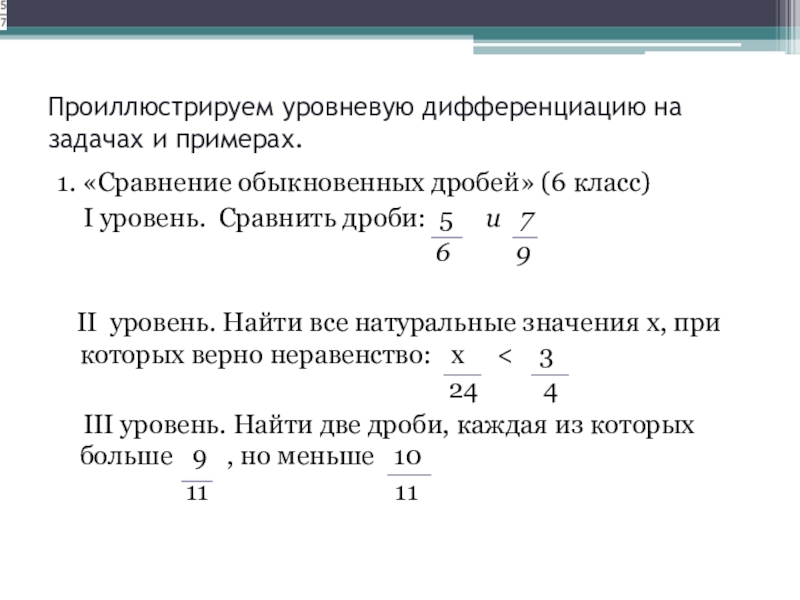 Слайд 9Проиллюстрируем уровневую дифференциацию на задачах и примерах.