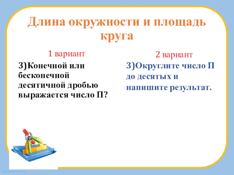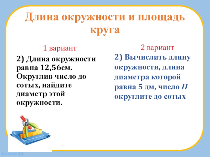 2) Вычислить длину окружности, длина диаметра которой равна 5 дм, число П округлите до сотых