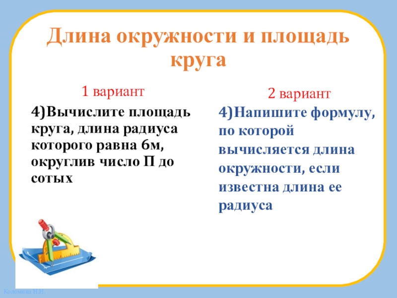 4)Напишите формулу, по которой вычисляется длина окружности, если известна длина ее радиуса