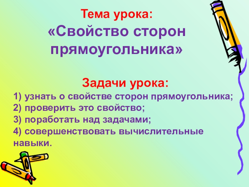 1) узнать о свойстве сторон прямоугольника;