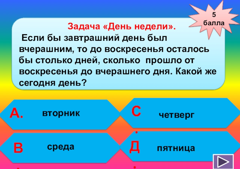 Если бы завтрашний день был вчерашним, то до воскресенья осталось