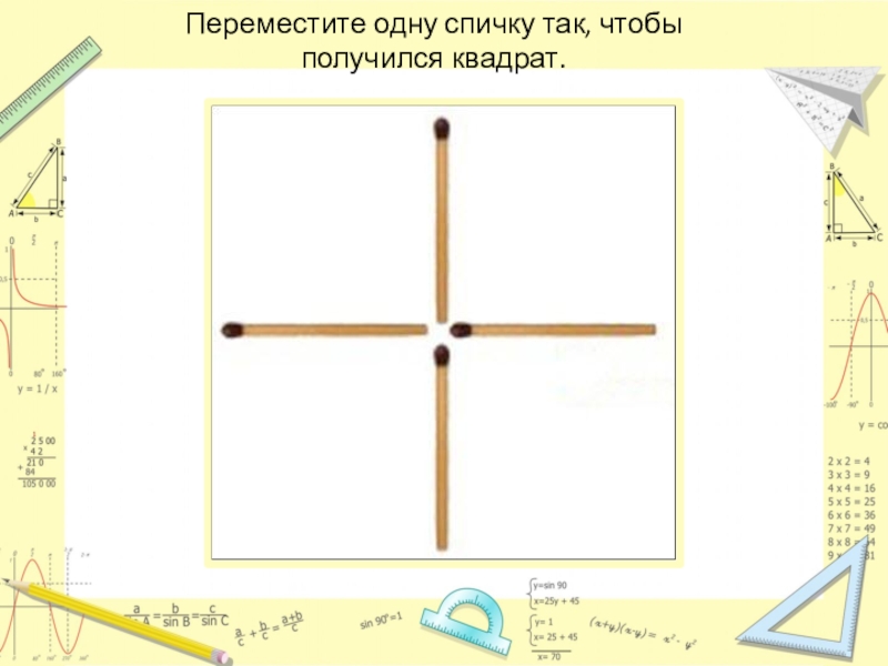 Слайд 4Переместите одну спичку так, чтобы получился квадрат.