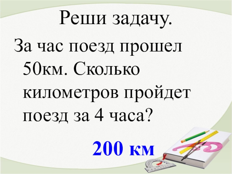 200 кмРеши задачу.За час поезд прошел 50км. Сколько километров пройдет поезд за 4 часа?