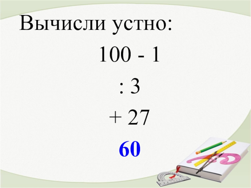 Вычисли устно:100 - 1: 3 + 27 60
