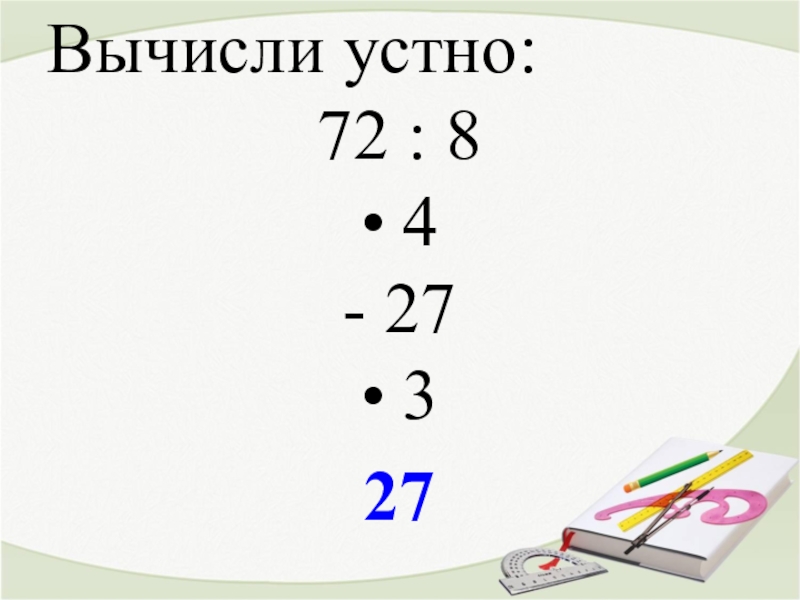 Вычисли устно:72 : 8• 4 - 27 • 327