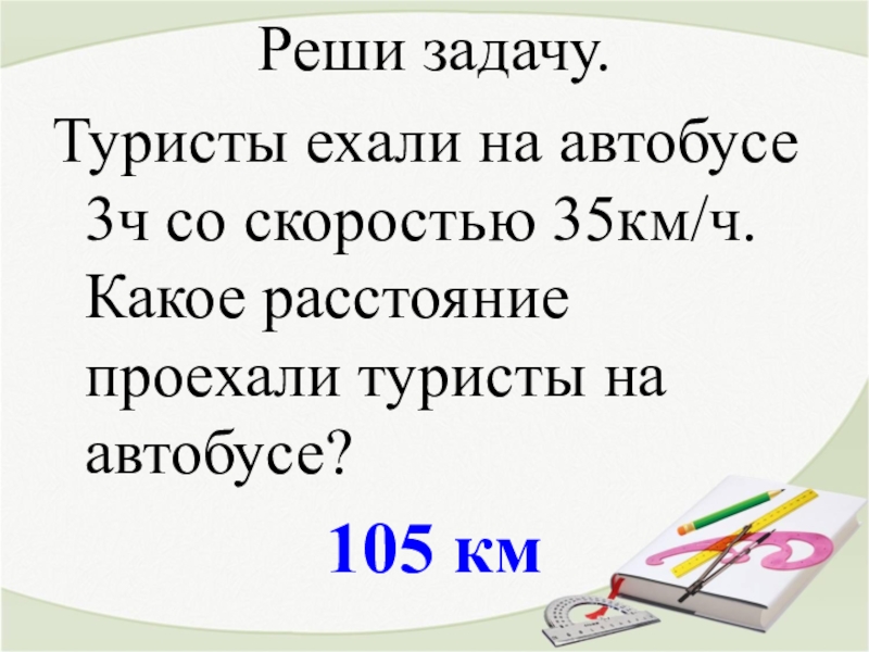 Реши задачу.Туристы ехали на автобусе 3ч со скоростью 35км/ч. Какое расстояние проехали туристы на автобусе?105 км