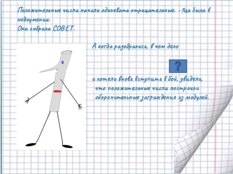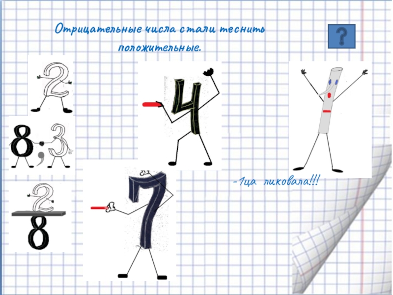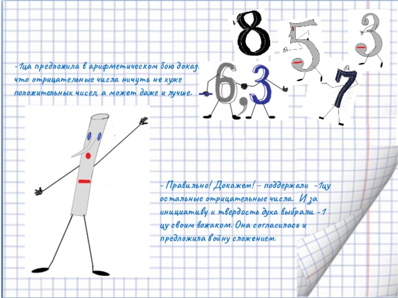 - Правильно! Докажем! – поддержали -1цу остальные отрицательные числа. И за инициативу и твердость духа выбрали -1цу своим вожаком. Она согласилась и предложила войну сложением.