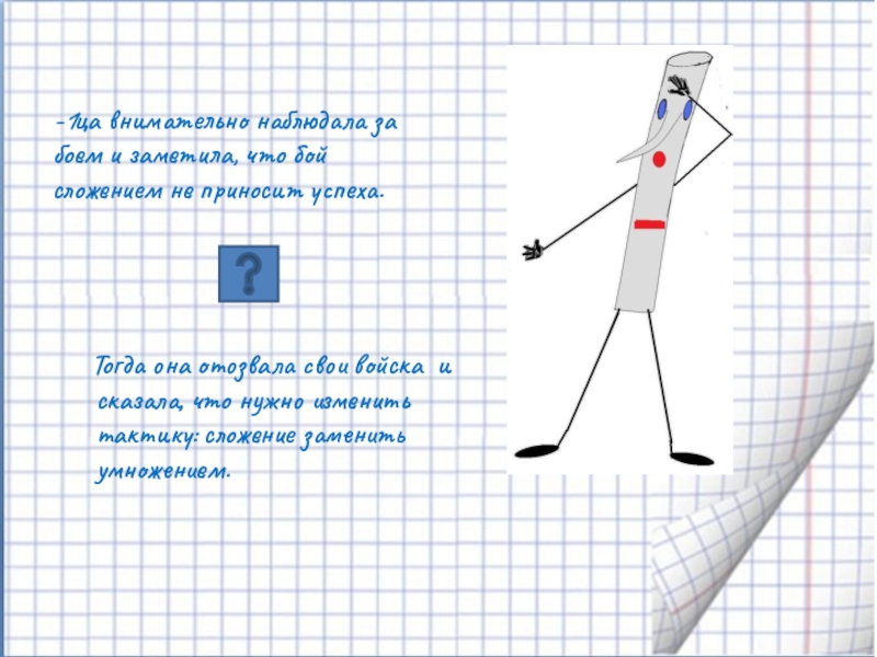 Тогда она отозвала свои войска и сказала, что нужно изменить тактику: сложение заменить умножением.