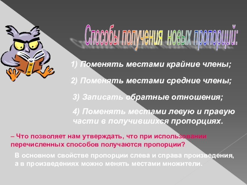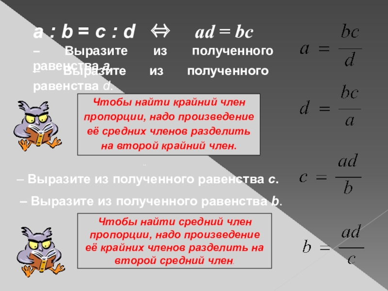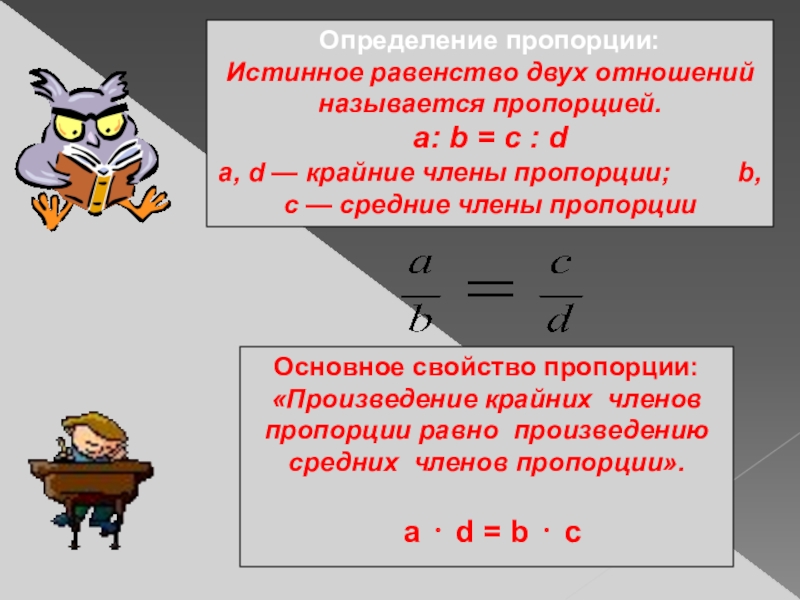 «Произведение крайних членов пропорции равно произведению средних членов пропорции».