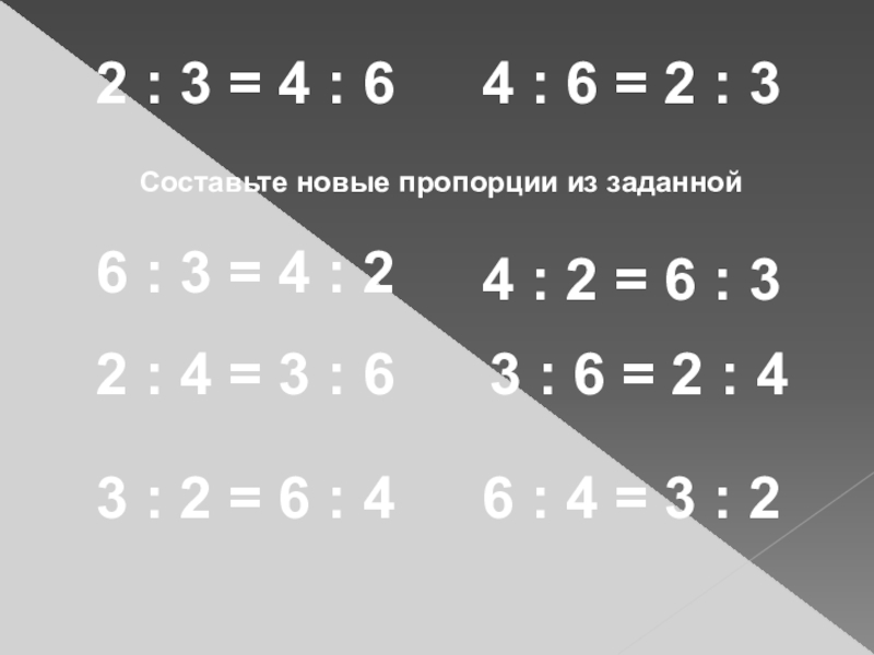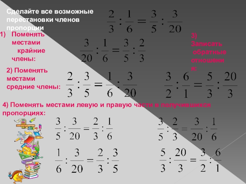4) Поменять местами левую и правую части в получившихся пропорциях: