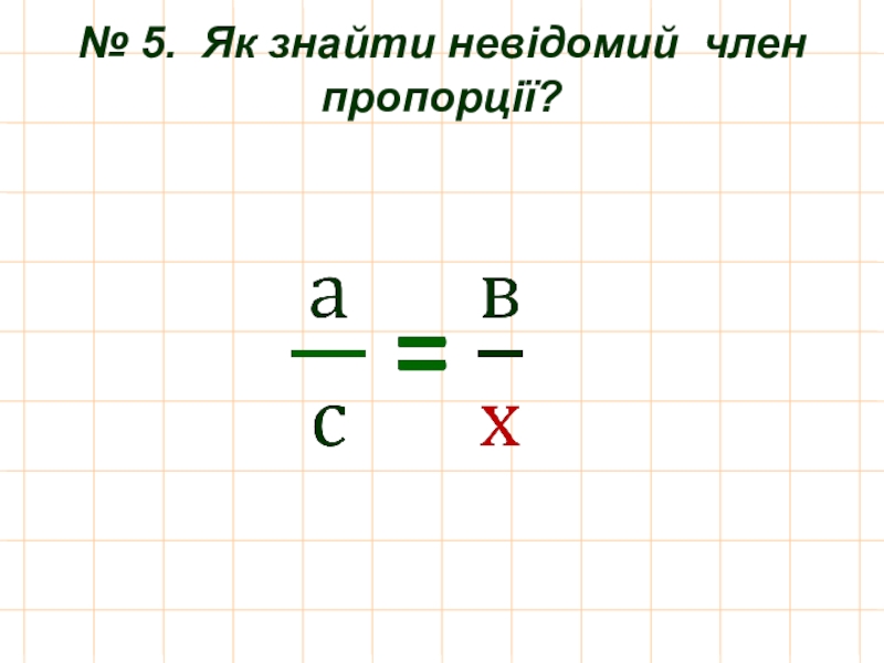 Слайд 14№ 5. Як знайти невідомий член пропорції?