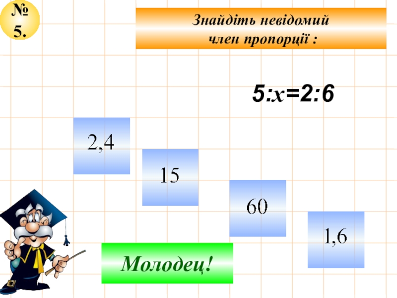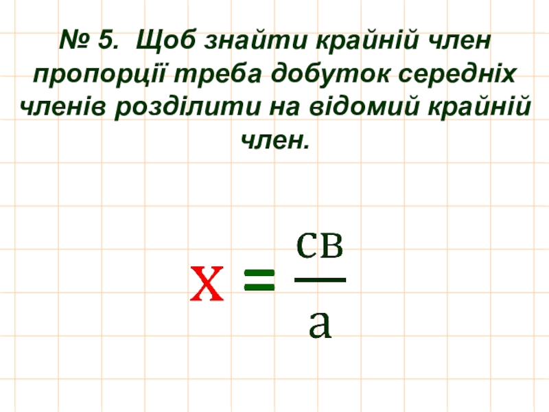 Слайд 15№ 5. Щоб знайти крайній член пропорції треба добуток середніх членів