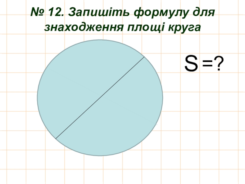 № 12. Запишіть формулу для знаходження площі кругаS=?