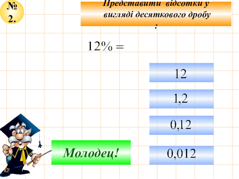 № 2.Представити відсотки у вигляді десяткового дробу:Подумай!Молодец!