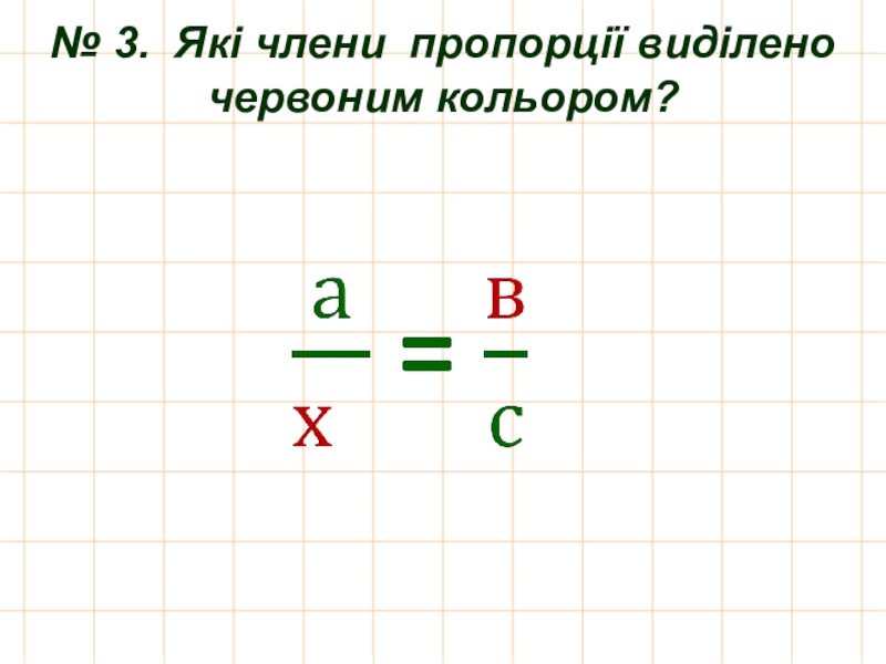 Слайд 10№ 3. Які члени пропорції виділено червоним кольором?