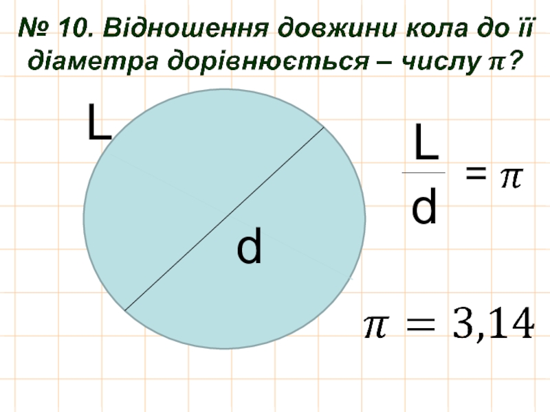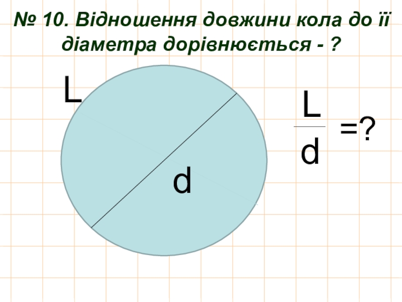 № 10. Відношення довжини кола до її діаметра дорівнюється - ? dLLd=?