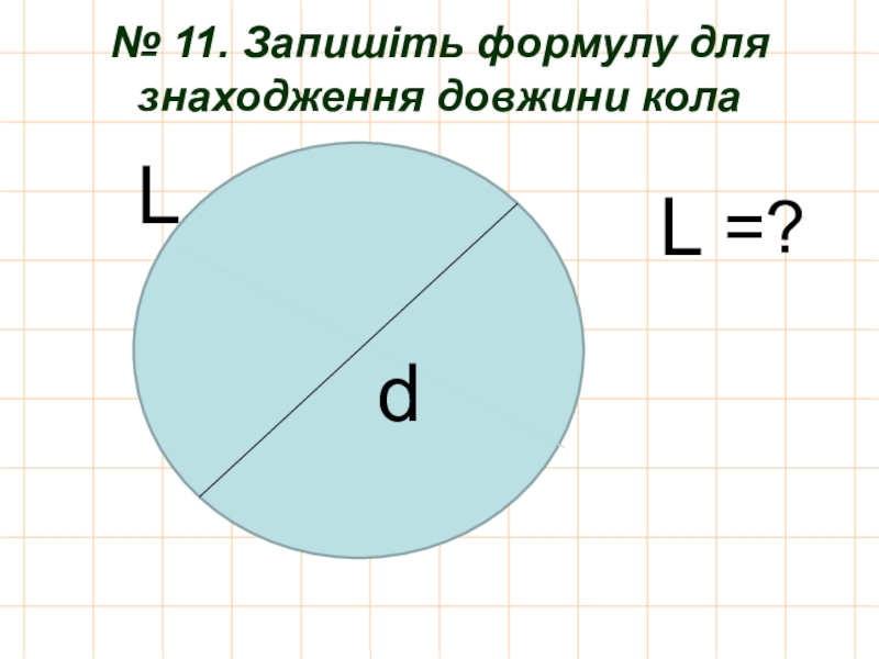 № 11. Щоб знайти довжину кола треба скористуватися формулою:dLL L