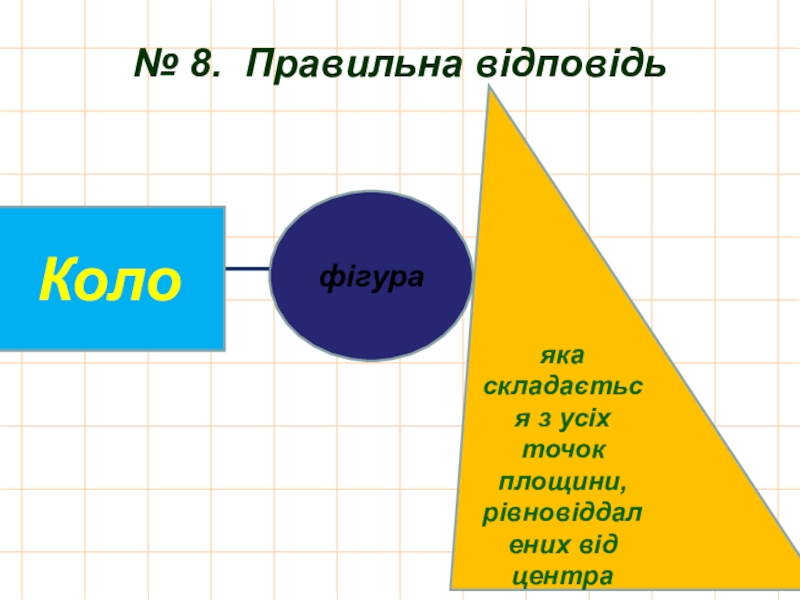 № 8. Правильна відповідьфігураКолояка складається з усіх точок площини, рівновіддалених від центра