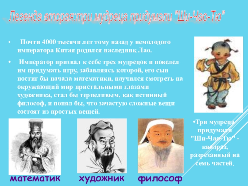 Три мудреца придумали "Ши-Чао-Тю" - квадрат, разрезанный на семь частей.