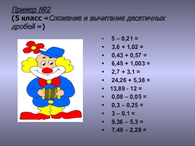 (5 класс «Сложение и вычитание десятичных дробей »)