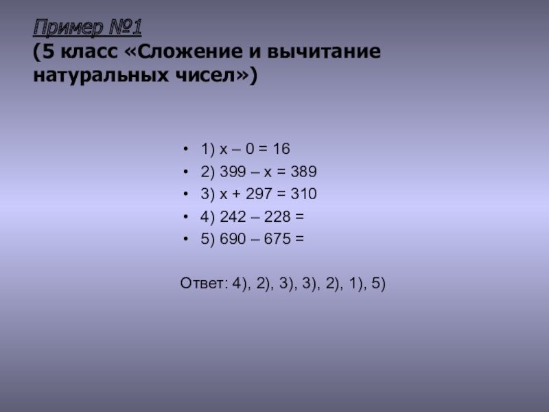 (5 класс «Сложение и вычитание натуральных чисел»)