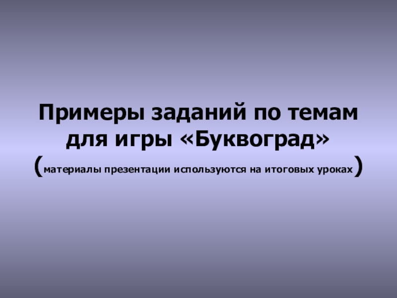 Слайд 5Примеры заданий по темам для игры «Буквоград»