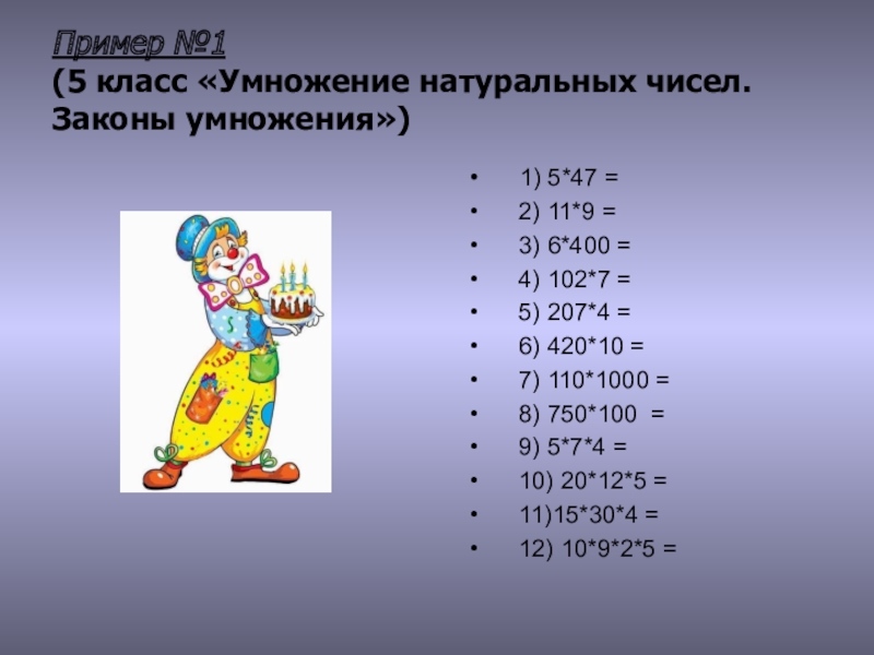 (5 класс «Умножение натуральных чисел. Законы умножения»)