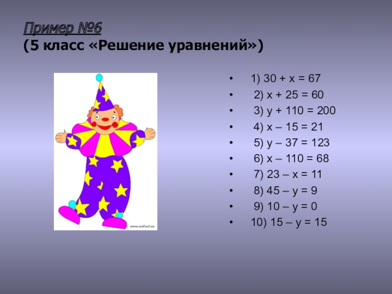 (5 класс «Решение уравнений»)