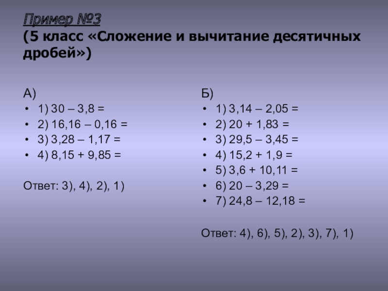(5 класс «Сложение и вычитание десятичных дробей»)