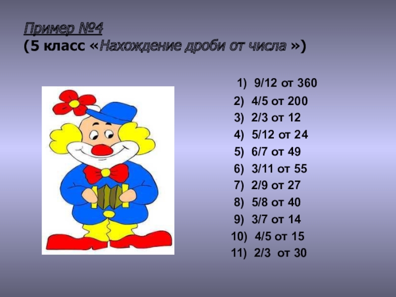 (5 класс «Нахождение дроби от числа »)
