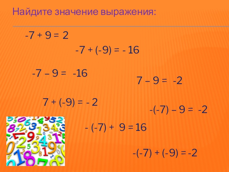7 + (-9) =