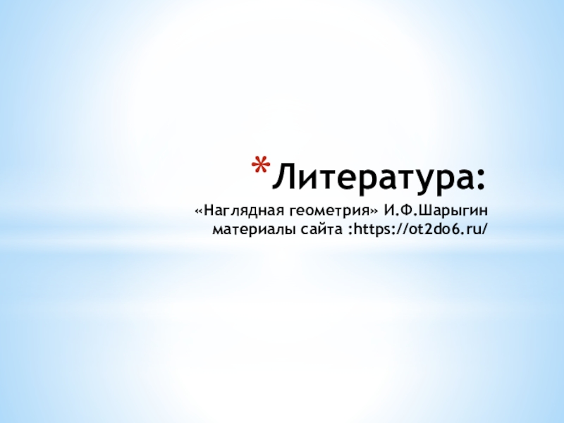 Слайд 15Литература: «Наглядная геометрия» И.Ф.Шарыгин материалы сайта :https://ot2do6.ru/