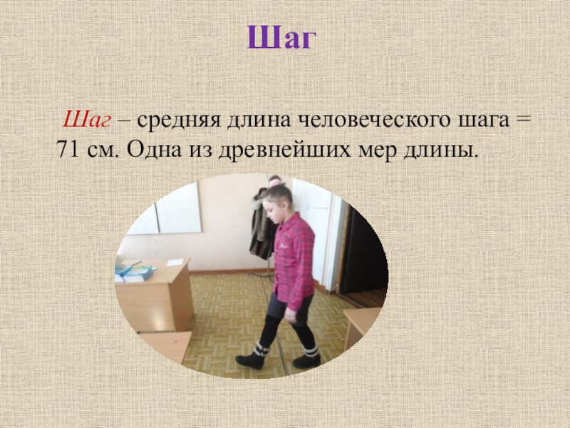 Шаг – средняя длина человеческого шага = 71 см. Одна из