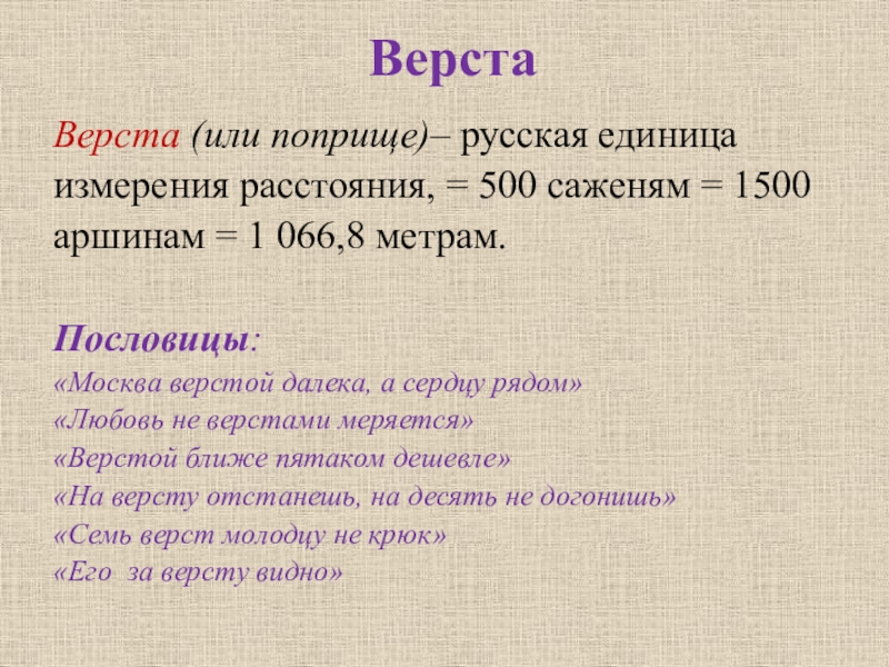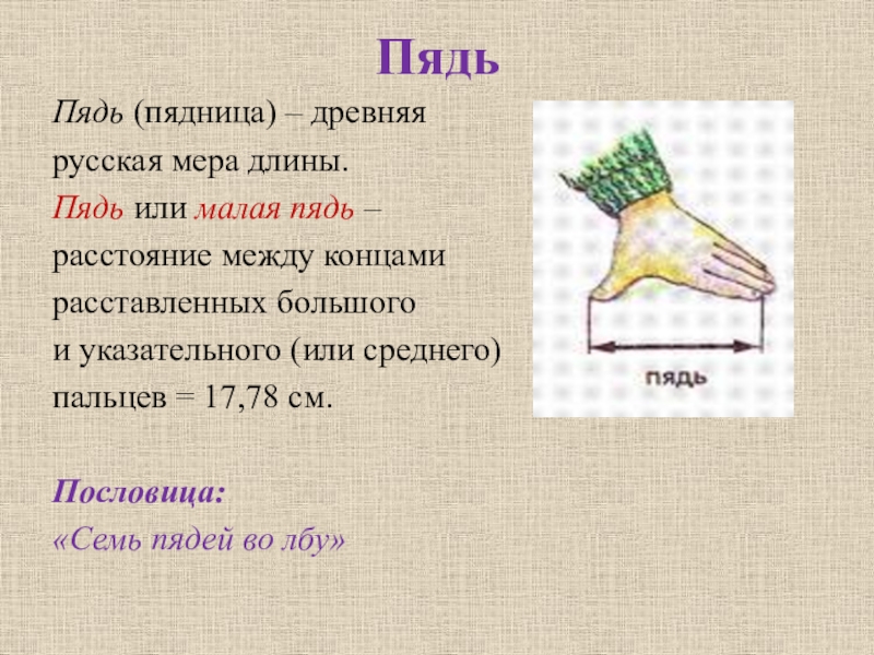 старинные меры длины встречаются в поговорках, в сказках, поэтому их надо знать.