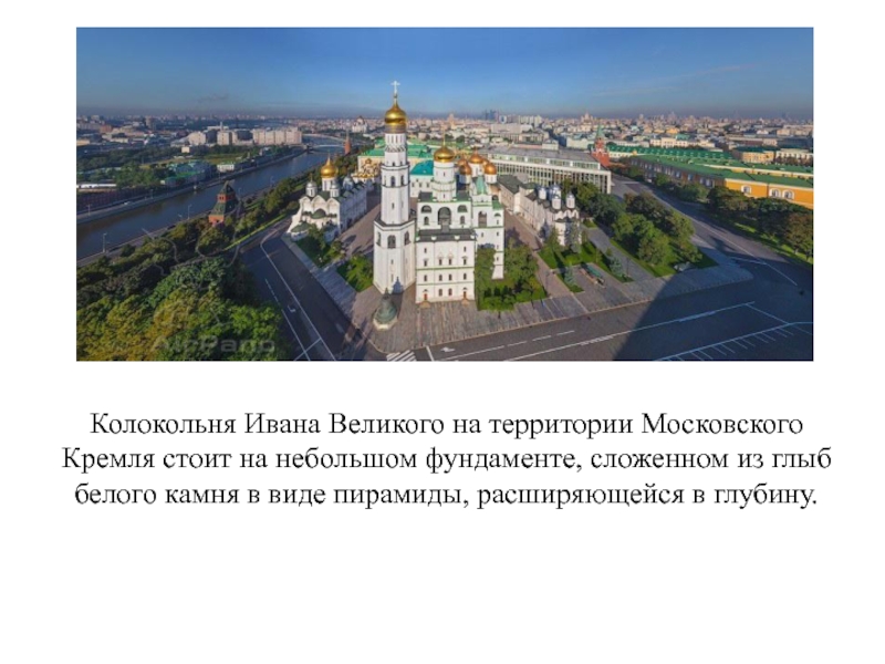 Слайд 3Колокольня Ивана Великого на территории Московского Кремля стоит на небольшом фундаменте,