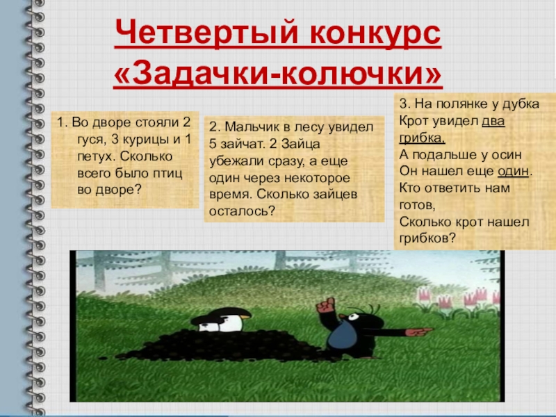 2. Мальчик в лесу увидел 5 зайчат. 2 Зайца убежали сразу, а еще один через некоторое время. Сколько зайцев осталось?
