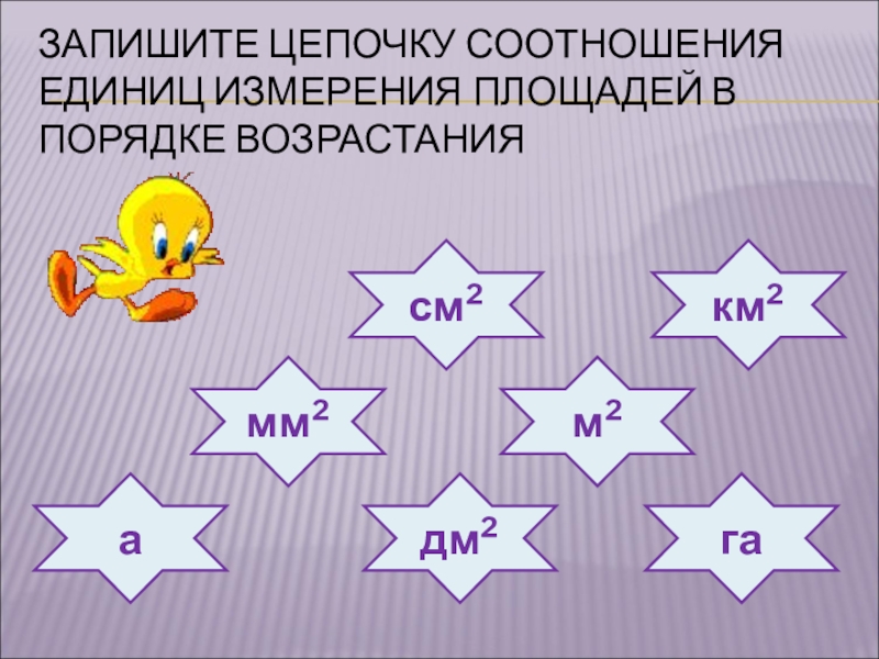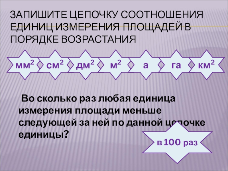 ЗАПИШИТЕ ЦЕПОЧКУ СООТНОШЕНИЯ ЕДИНИЦ ИЗМЕРЕНИЯ ПЛОЩАДЕЙ В ПОРЯДКЕ ВОЗРАСТАНИЯ