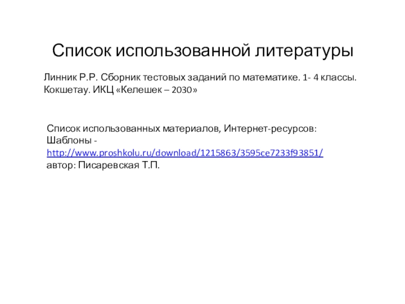 Список использованных материалов, Интернет-ресурсов: