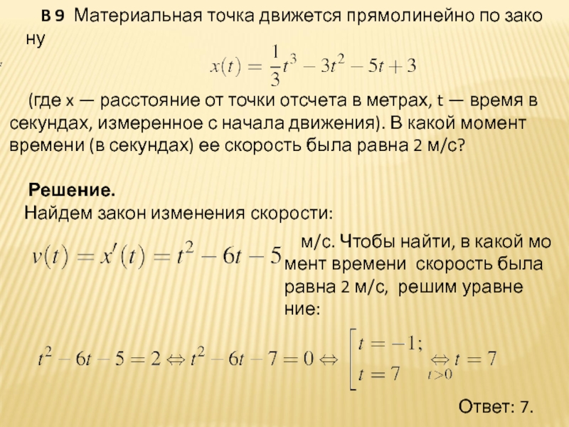 м/с. Чтобы найти, в какой момент времени скорость была равна 2 м/с, решим уравнение: